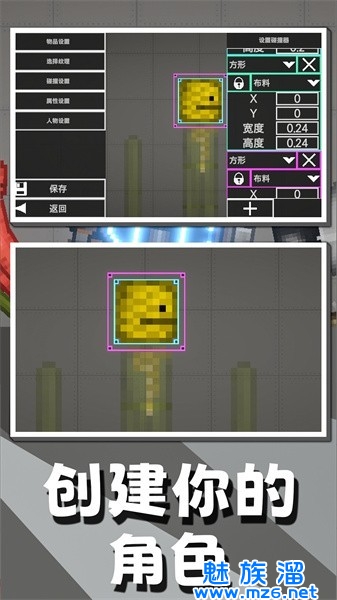 3、设计各种形状的人物形象,让更多的人物一起冒险,还有很多地图等着你自由冒险!