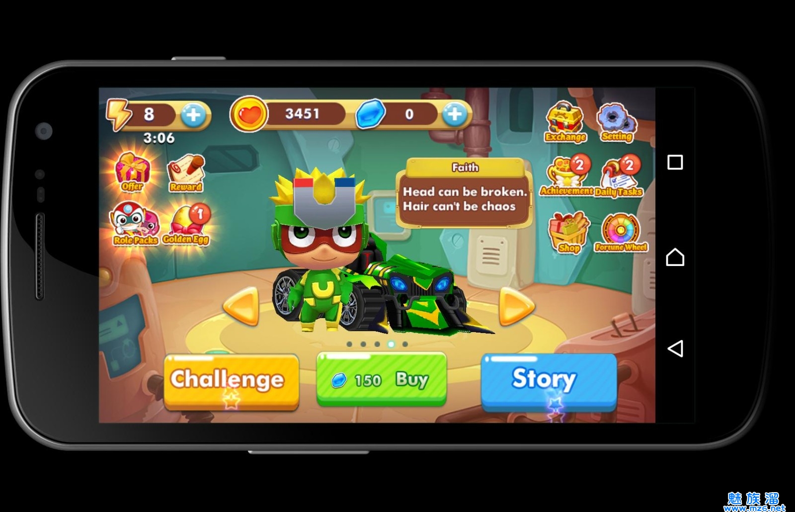1、可选故事模式与挑战模式,并且还有道具赛等变种的玩法。