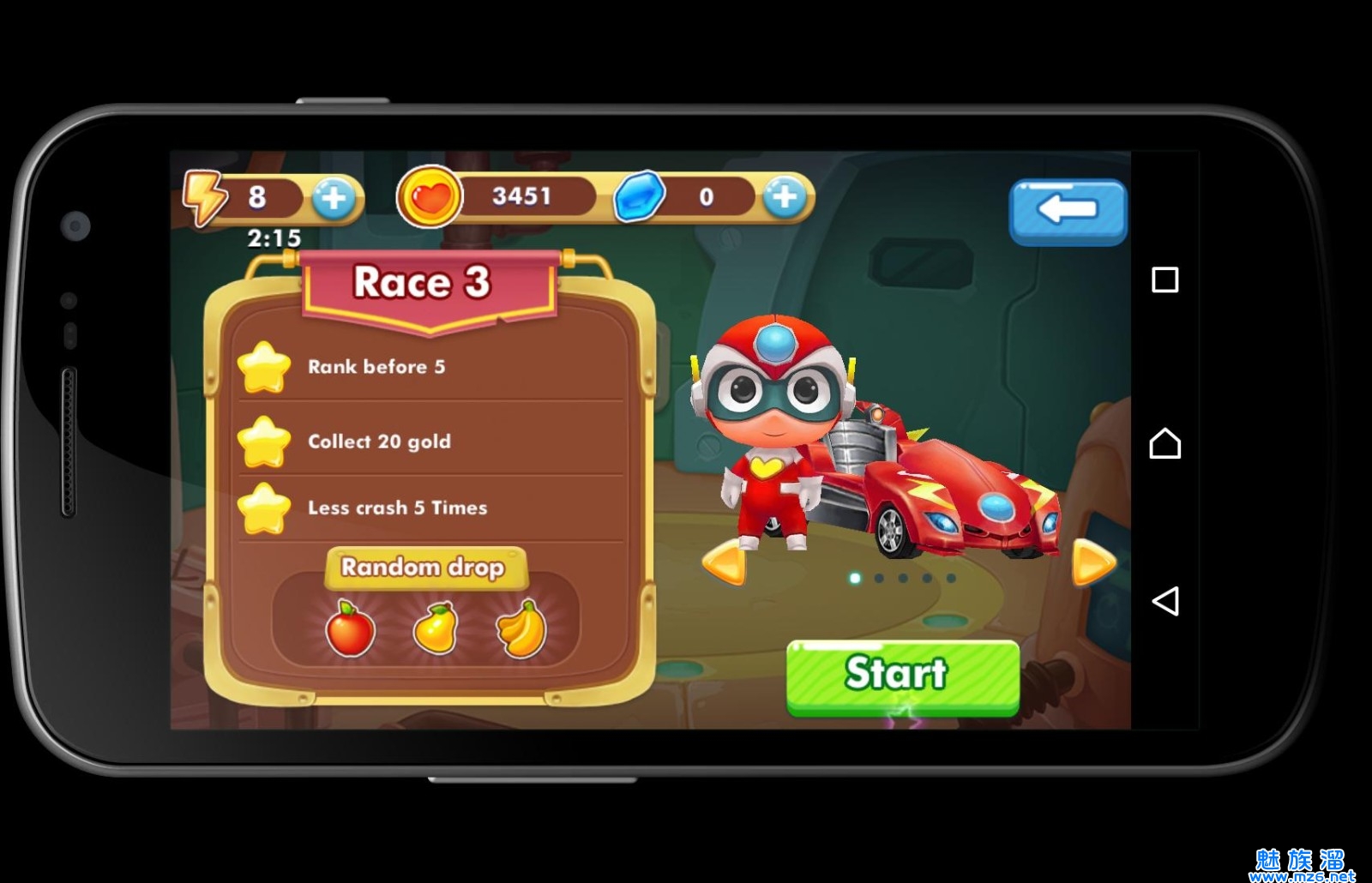 3、迎接挑战和障碍。在激烈的3D卡通迷你赛车比赛中击败重力跳高和极限特技。
