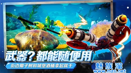 2、使用武器,你就能拿起人类的武器,就能去击打更多的螃蟹,能成为最新的霸主。