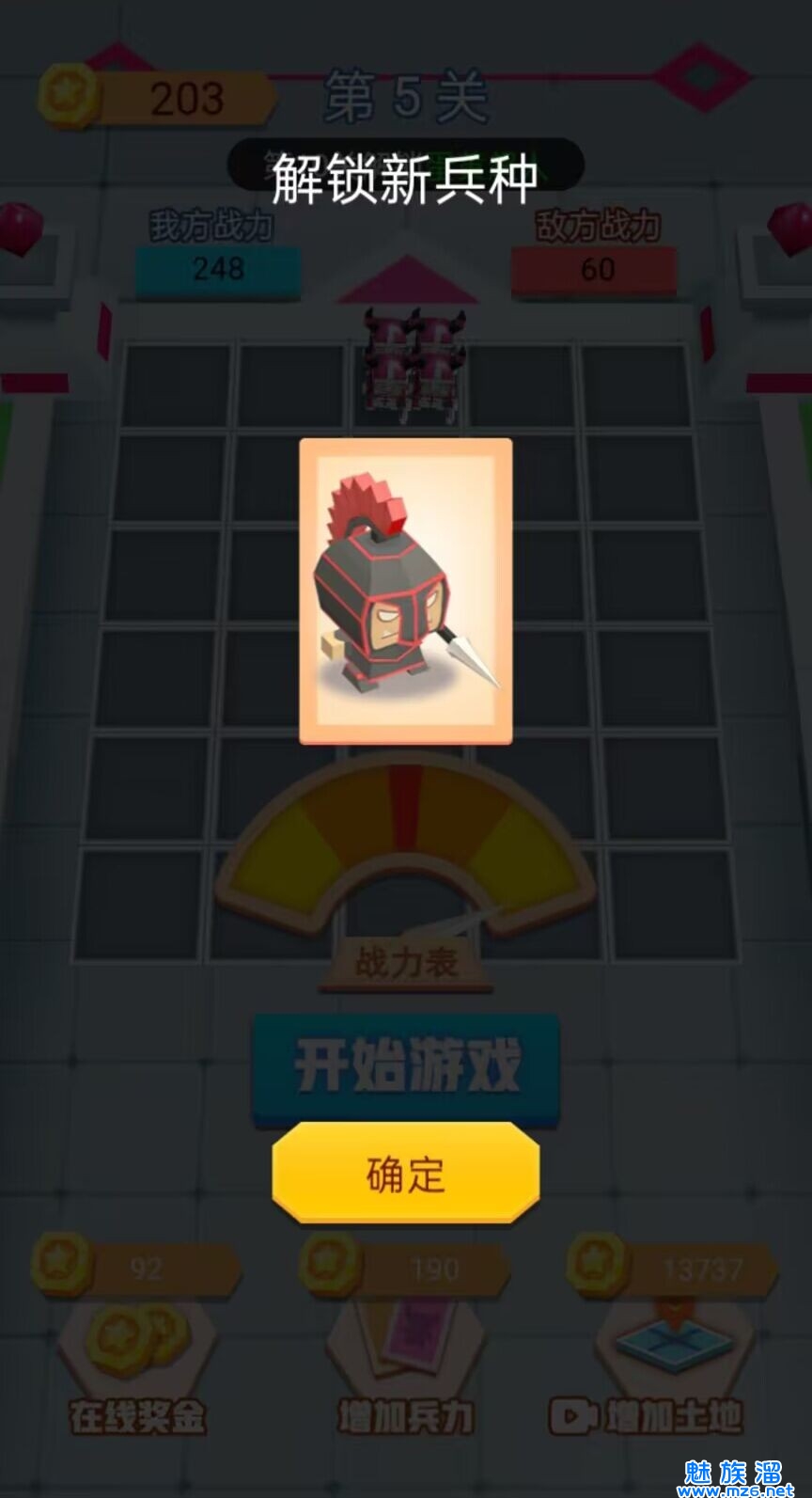 4、悉心经营你的城池,提升自己战力和技巧,在轻松的点兵划将中,整个世界都被你的小兵大军所征服。