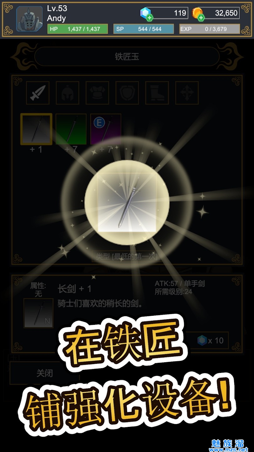 2、击败怪物,增强装备,免费提升英雄的乐趣。