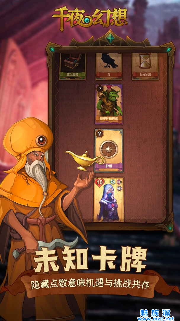《千夜幻想安卓版》是一款冒险系列的纸牌游戏,《千夜幻想安卓版最新版》内容丰富,剧情精彩,每一个卡牌都是神秘的,你需要开动你的脑筋来探索,赶紧来下载吧。