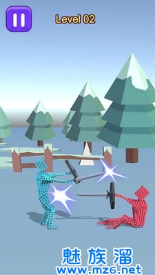 在游戏中,你操控的蓝色方块小人将与红色方块小人进行生死决战,在决战开始前,双方可以选择自己心仪的武器来参与决战,在比赛时,先触碰对方就能获得胜利,一招制敌,我说了一招,就不会出第二招,去消灭你的敌人来完成你的挑战任务。
