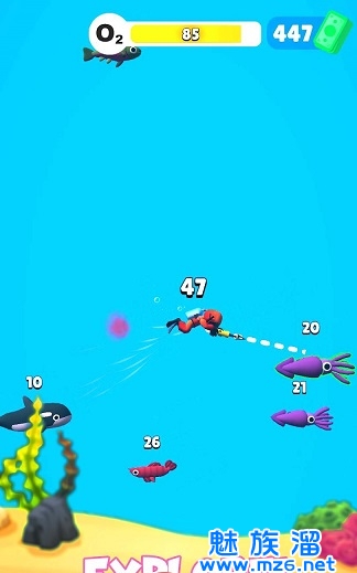1、在水下进行很多的小鱼的收集,去提升你的经验进行升级的操作。