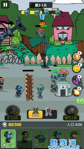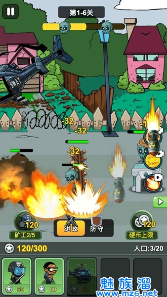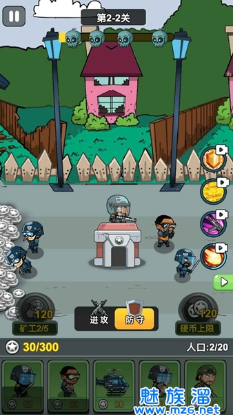 2、率领你的部队攻占各个阶段的丧尸炮台。