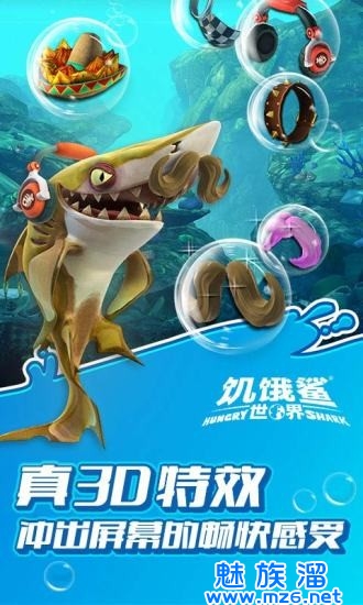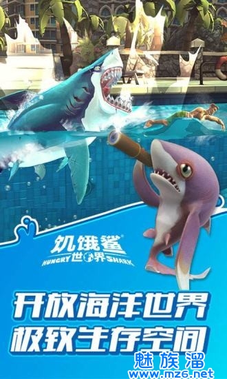 1、可以收集各有7种不同大小的20类鲨鱼品种,扮演敏捷的双髻鲨,甚至到著名的大白鲨!