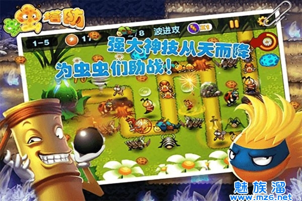 虫虫保卫战塔防是一款以昆虫为主要背景的经典塔防游戏,需要玩家组织虫虫们抵御敌人的进攻,玩法主要是通过放置的方式来消灭来袭的敌人们。