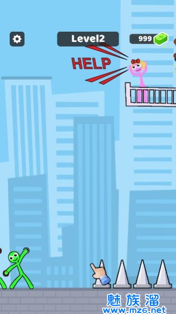 2、堆叠你的火柴人大军,心爱的女孩正在高楼向你求救。