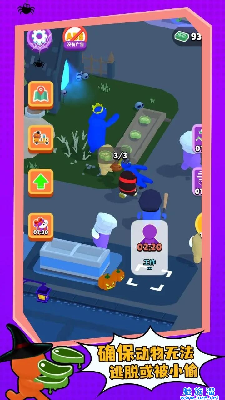 在游戏中,你将管理业务的各个方面:喂养宠物,清理公园,卖门票赚钱。别忘了跟踪你的成长策略,同时保持你的彩虹朋友健康和可控。一起确保这些动物无法逃脱或被小偷偷走!