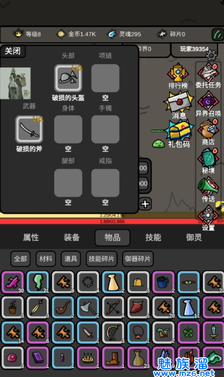 4.升级要用到金币和碎片,通常是缺少碎片,不建议乱升级,优先升级经验套装,这里有两个概念,等级和灵等级。