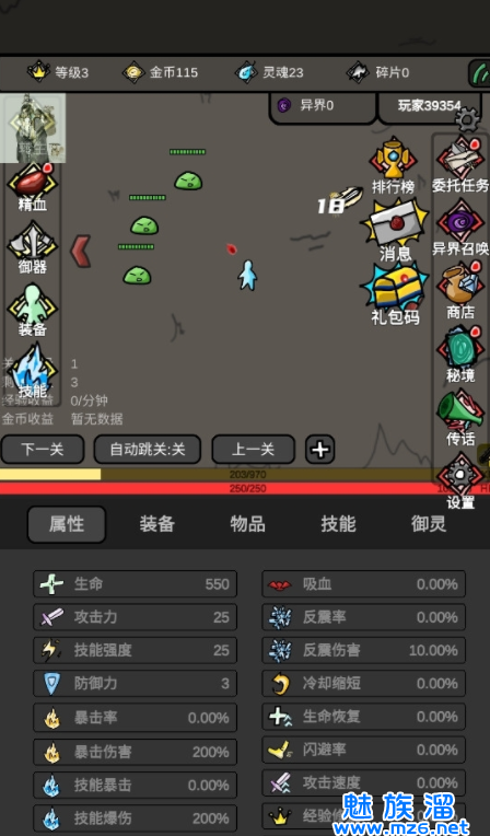 游戏中的玩法非常的丰富多样,挑战性满满,在这个世界中海量的敌人将会向你发动进攻,你需要在这个世界中不断的探索冒险,通过战斗的同时获得强力的天赋装备等提升自己的战力,让你的闯关更加的轻松。帮助玩家们可以更好快速的升级体验更多快乐,游戏依旧采用经典竖屏来进行操作,玩法简单易懂,通过放置挂机,边可出现一个又一个全新的玩法内容,多种技能随心搭配,面的无止境涌入的敌人包围,你要想尽一切办法,努力的将他们给全部消灭,直至最终的不再新生。总体来说游戏的可玩性还是非常高的,玩起来也不会觉得枯燥无聊。