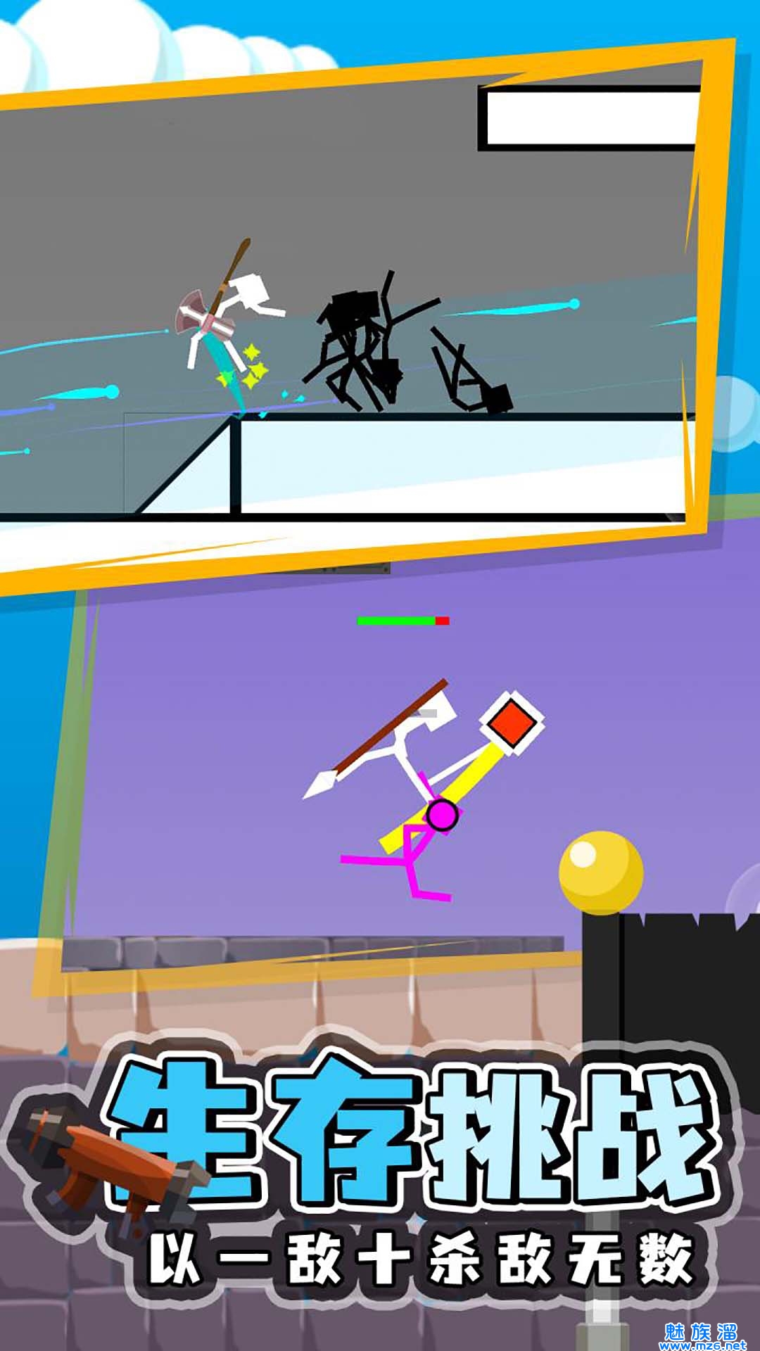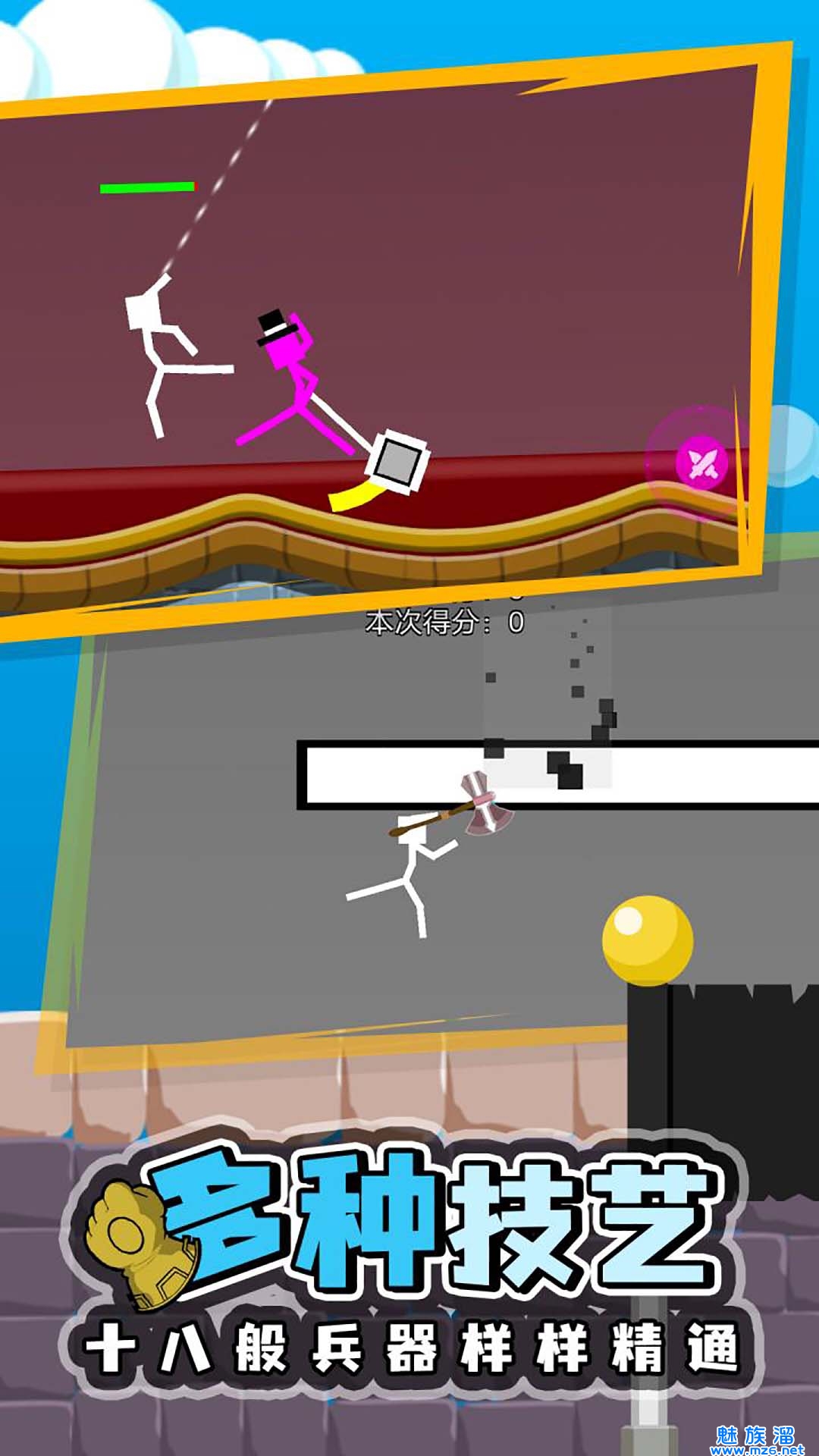 2、玩家控制火柴人来进行最残酷的物理格斗,不管玩家用什么样的方法,目的都是淘汰对手。