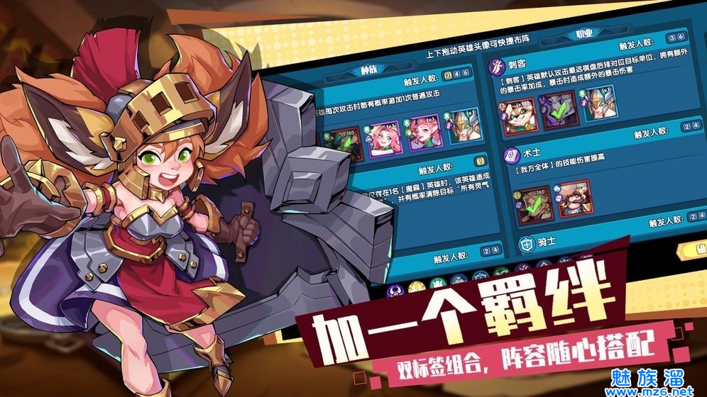 3、上阵时,通过种族与职业组合触发多重buff叠加,阵容更多更有趣!