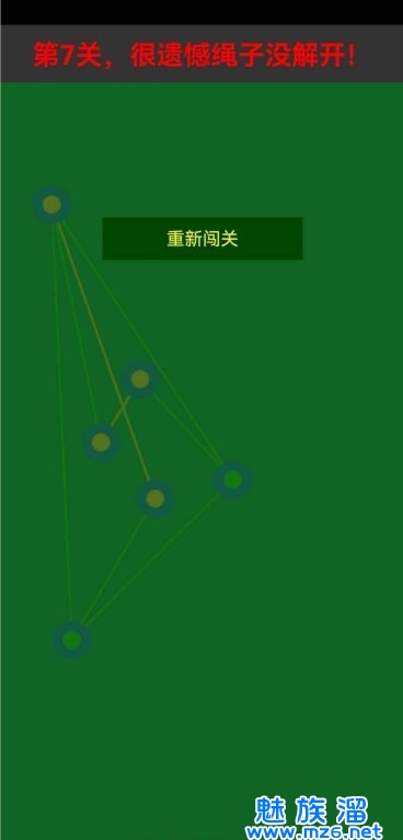 拖动节点,让所有绳子不交叉,在下方剩余步数内解开即可进入下一关;