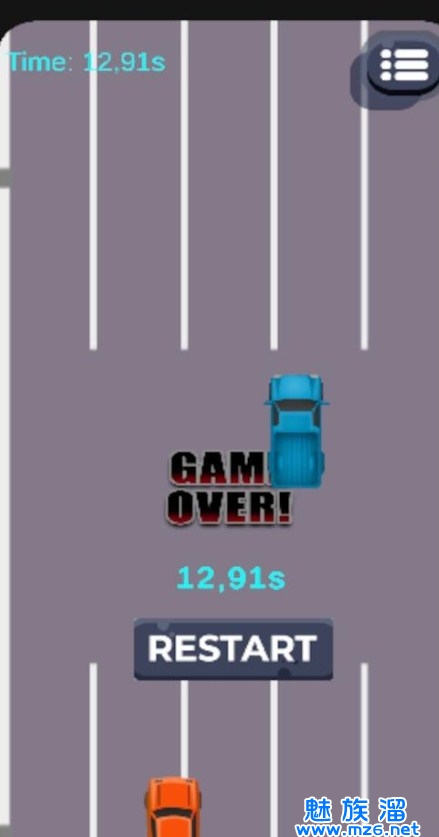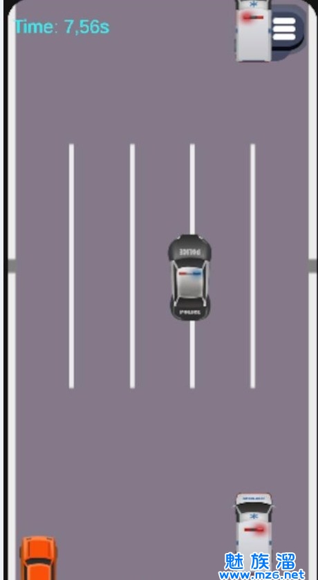 1、玩家控制一辆红色汽车在繁忙的街道上以两倍于周围车辆的速度来回行驶。