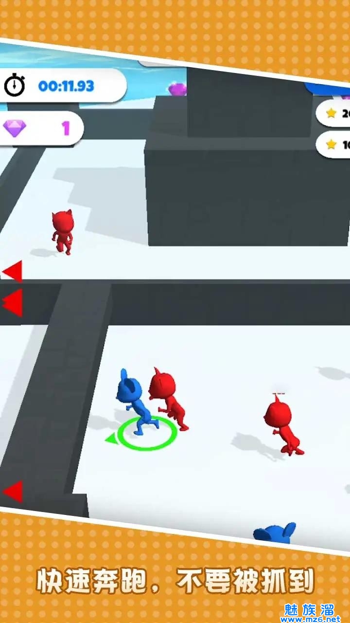 1、每场比赛都能带来欢乐体验,你要和所有队友们一起冲刺,不能被任何猫咪抓到。
