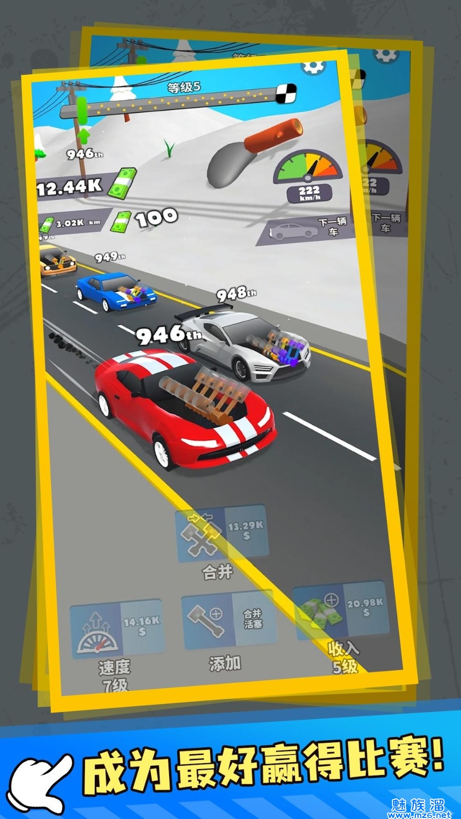 1、为玩家们带来了极为精彩有趣的冲刺挑战玩法,通过升级汽车的各种零部件来提升性能;