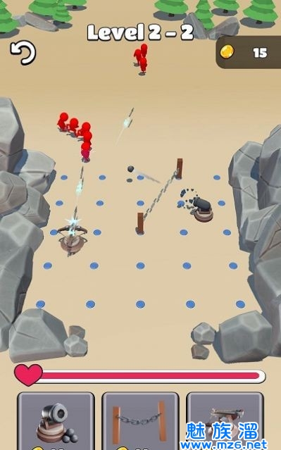 绳炮防御战游戏是一款休闲类塔防策略手游。绳炮防御战游戏安卓版中玩家需要在规定时间击败对手,展示你的游戏实力实现你的目标,一起解锁更多竞技策略。你是这里最强的策略大师,可以帮你快速做出改变。