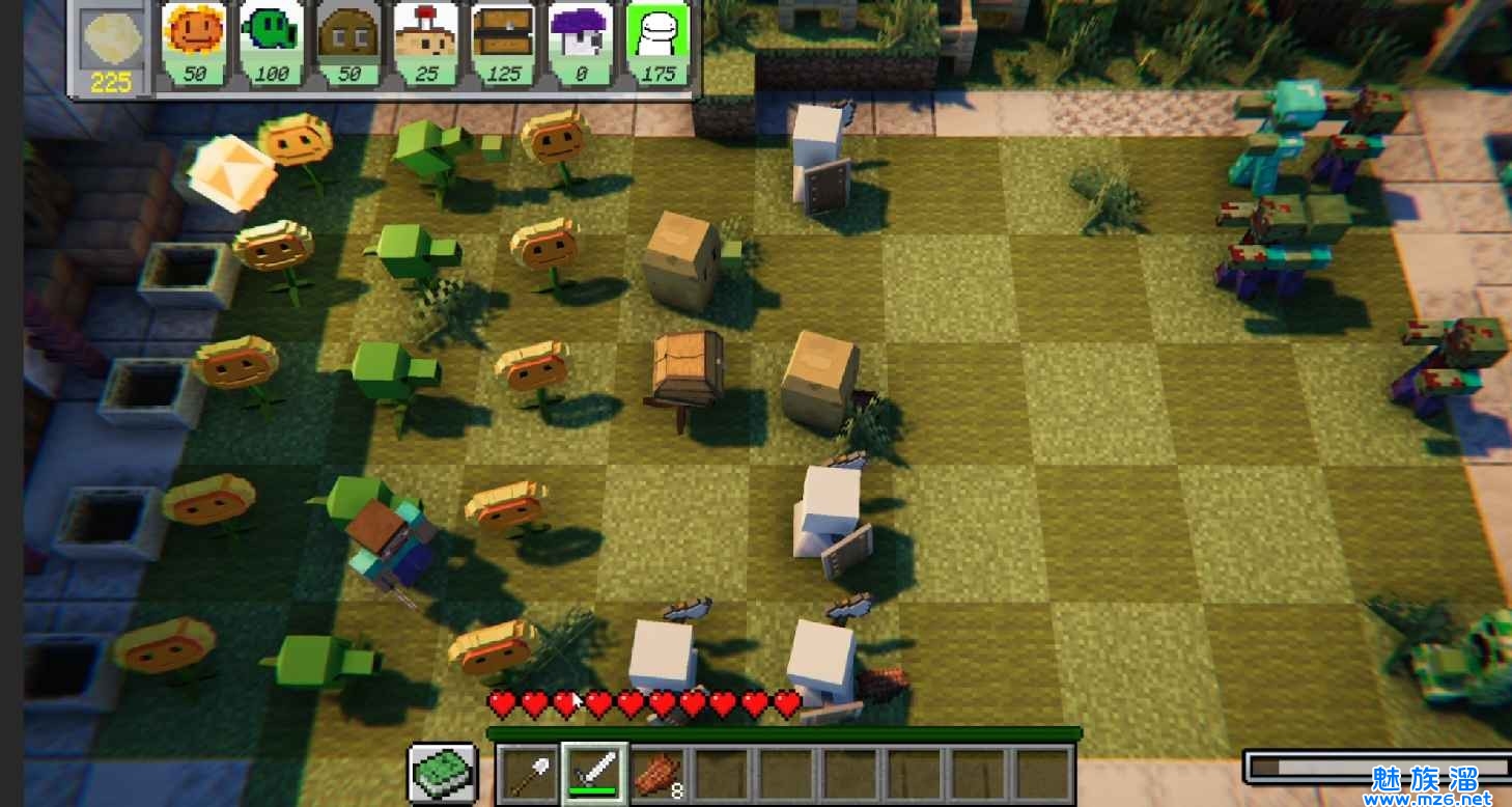 一款结合了我的世界游戏的植物大战僵尸新模式,为玩家们带来了像素版的植物战僵尸画面,带有浓浓的沙盒像素游戏色彩。让你感受到全新的乐趣,玩家需种植向日葵来收集阳光,然后种植豌豆射手来攻击僵尸,最终目目标就是保护你的房子别被僵尸进入。在这里我们将操纵老朋友史蒂夫通过移动来获取“小太阳”,然后通过消耗固定数额的“小太阳”来中指出多种多样的像素植物,以此来帮助我们击退源源不断的丧尸大军。沙盒像素风格的塔防类手游,拥有各种华丽的风格和冒险都可以随意体验和享受,还有各种有趣的冒险任务,享受最华丽的战斗故事。不断的增强自己的塔防,抵御僵尸的入侵,提升整体的战斗能力,感兴趣的小伙伴快来下载吧!