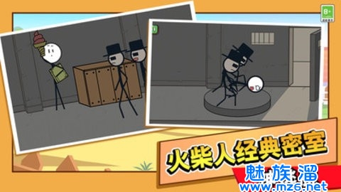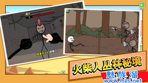 游戏内容经过魔改,游戏采用卡通简约画风打造,各种火柴人角色等你闯关解锁;