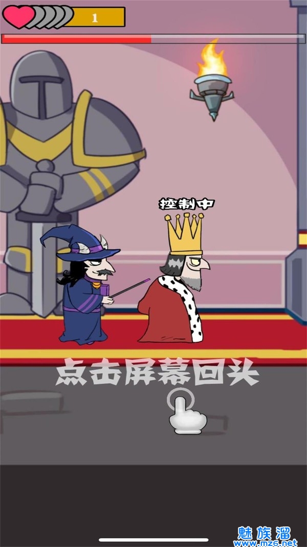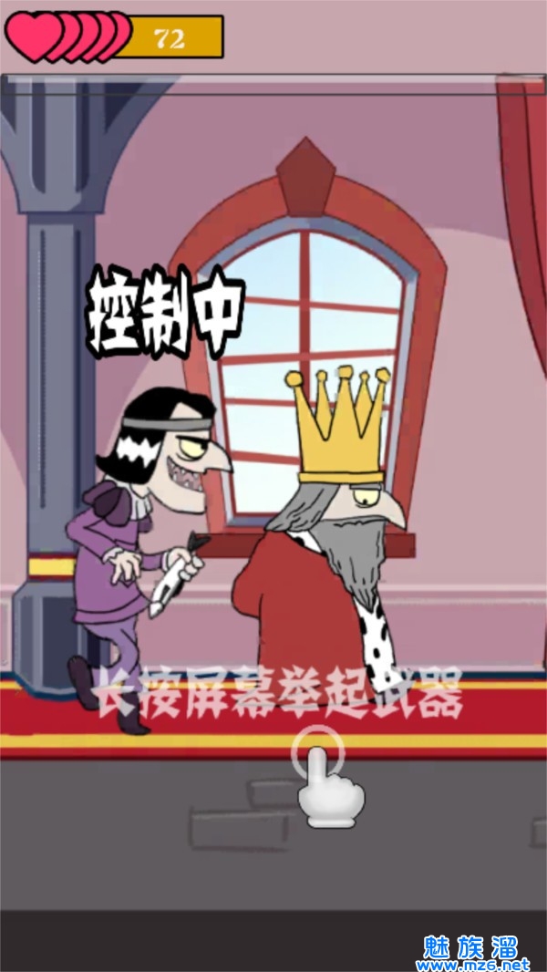 2.当角色走进国王时,长按屏幕,当上面的蓄力条满时,角色挥刀刺向国王,在蓄力期间,一旦发现国王有回头的动作,手指要赶紧离开屏幕,以防被抓