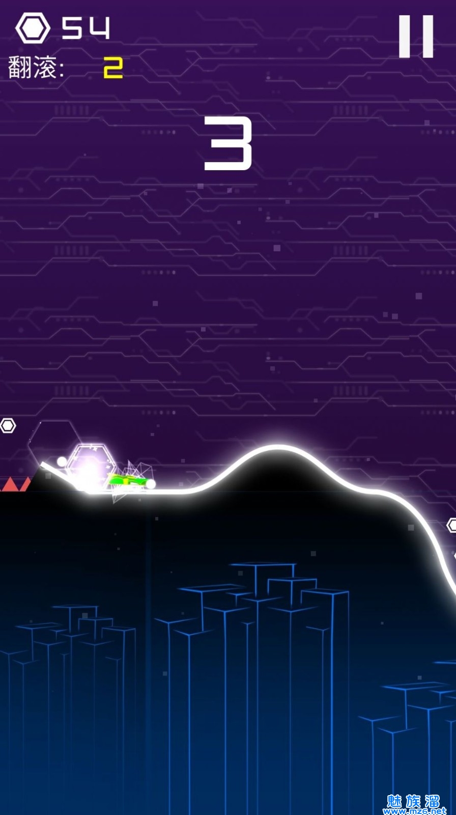 2、挑战崎岖的道路,躲避前方的障碍,成功的到达终点,搭配酷炫的特效。