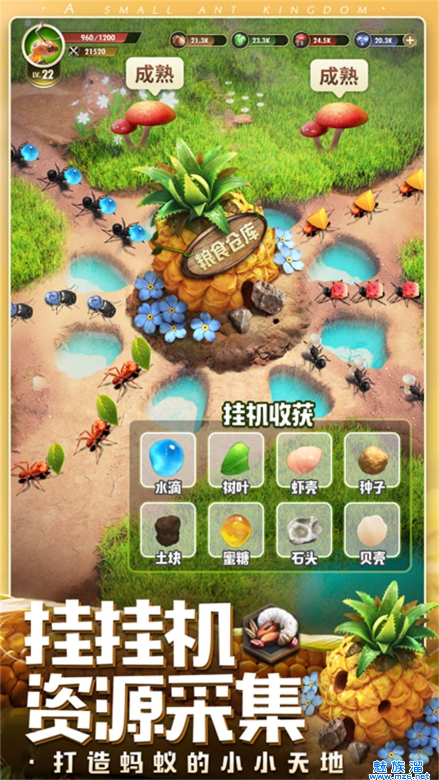 3、你是最终的蚂蚁统治者,可以领导女王,建造蚁丘,培育殖民地,抵御敌人。