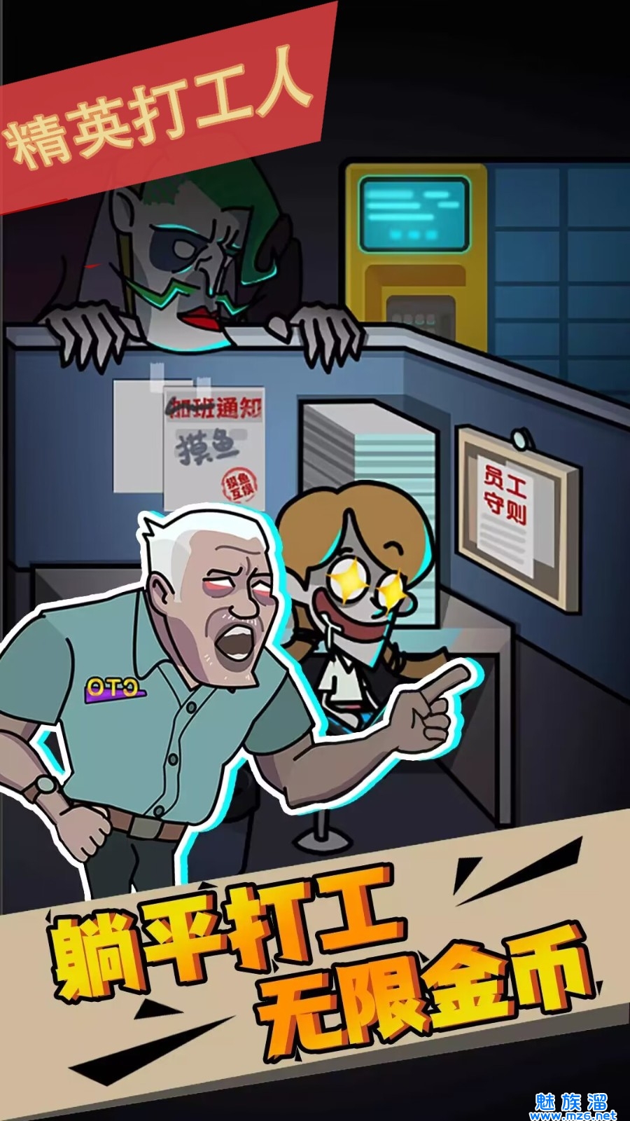 精英打工人是一款要打败可怕老板的塔防游戏,玩家们作为员工需要保护好自己,在工位上做好防护,不让我们的老板进入,可怕的老板角色,带点恐怖的游戏画风,玩家们可以使用各种的策略指导,难度也是会逐步的升级的哦~快来下载吧!