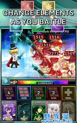 3、RPG战斗系统,强弱元素,丰富的故事情节,各种情节事件,PVP联盟等玩法。