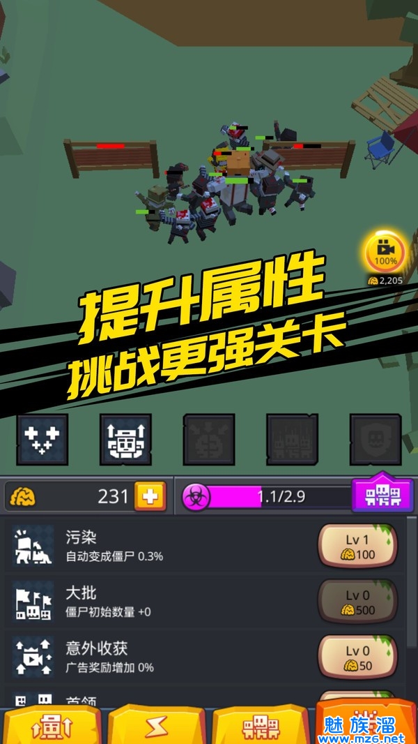 3、招募僵尸:玩家需要在游戏中不断招募新的僵尸,每个僵尸都有不同的属性和技能,玩家需要合理地搭配他们的技能,打造强大的僵尸军团。