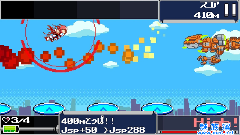 【飞弹蓄力中】像素风格的横版战斗闯关游戏哦!采用像素作风的画面设计,玩家能够运用多种招式来攻击敌人,还有超强的飞弹装置可以让你不断的快速前进,紧张刺激的空战体验,还会带来各种有趣的战斗体验,在这里尝试下吧。