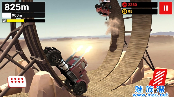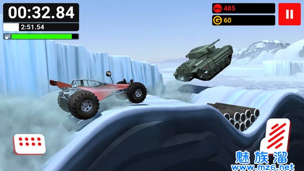 这是一款趣味越野爬坡游戏,玩家只需要控制加速和刹车两个按键就可以,在空中的时候,加速和刹车会让车子分别向逆、顺时针旋转,调整它的姿态,以保障落地时的平稳与速度,不要让自己翻车哦!整个游戏画质细腻,丰富的地形与赛道选择,赛道情况复杂何有挑战性,竞技气氛瞬间拉满,,趣味与难度兼得的游戏,各种酷炫赛车等你来驾驭!