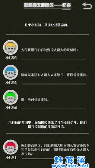 如果明天是晴天是一款文字剧情游戏,里面讲述了一个跌宕起伏的故事,通过多条线叙事,玩家可以自由的在其中游玩和解谜,体验剧情的紧张刺激!所有内容都是手绘风格,很有独到的感觉,并且操作非常的轻松但是很烧脑哦。