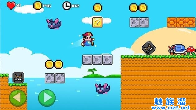 游戏中你是一个水管工造型的角色,在山河大海,高山丛林等不同的场景穿梭,我们需要控制这个角色,一路闯关,击败怪物,赢取胜利,在终点到来的时候才可以拿到高分,有兴趣的伙伴选择这款游戏吧。
