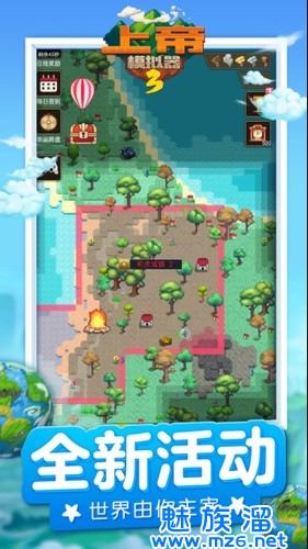 一款非常经典的休闲模拟类创造手游,游戏秉承了前几部经典的玩法,玩家依旧扮演全能的上帝,在第三部中增加了更为丰富的创造选项,整体的可玩性也提升了不少。全新的内容、全新的模式,给你们带来全新的体验。你可以创造和绘制你的世界地形、创造文明的生物和毁灭文明的怪物、创造自然生物和怪物、创造自然物质和灾难,甚至还可以创造魔法与炸弹,利用这些东西自由的发挥想象力打造属于你的世界,是欣欣向荣还是毁灭,全由你做主。玩家可以在这里自己建造一个文明的世界,各种道具等你来使用哦,在这里你可以解锁更多的地图,游戏玩起来十分有趣,大家可以在这里自由制定任何规则,掌握一个星球的文明,你可以自由选择创造还是毁灭,游戏采用经典像素风格打造而成,画风清新简约,在游戏中,玩家将扮演一名上帝,你可以在这里按照自己的想法打造一个自己喜欢的文明,这里还有很多其他的场景可以自由安排的,还能随意创造出各种自然灾害、生态破坏、资源缺乏等危难时刻,从中更好的领悟进化与文明崛起的意义。非常的好玩有趣,快来下载游戏吧!