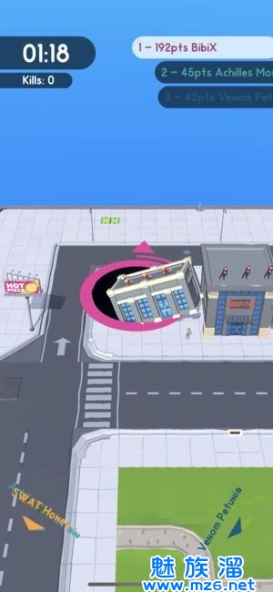 在小黑洞时期最大的积分来源就是人,人最多的位置在周边的街道,游戏开始后一般的玩家会在地图的中央去吐东西,虽然地图的中部小人也不少,但是竞争太过激烈,