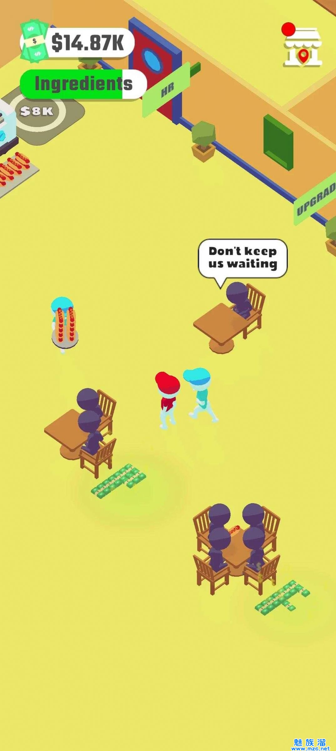 3、可以招募各种的员工,帮助自己打理餐厅,扩大营业。