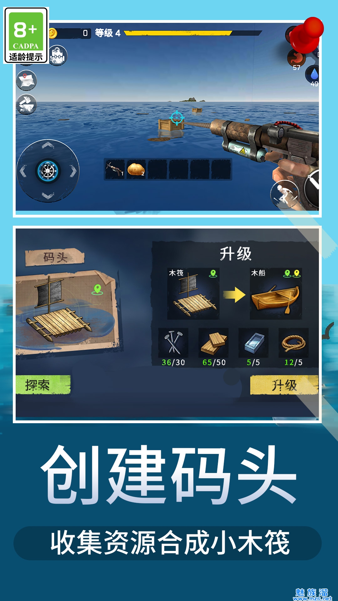 1、建造木筏,荒岛求生,很多任务,等你完成;