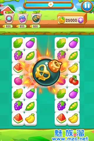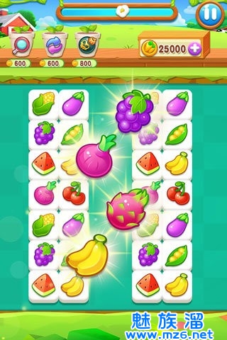 1、在游戏的里面玩家是可以看到很多的水果种类的,然后你可以将两个一样的水果进行连线消除掉;