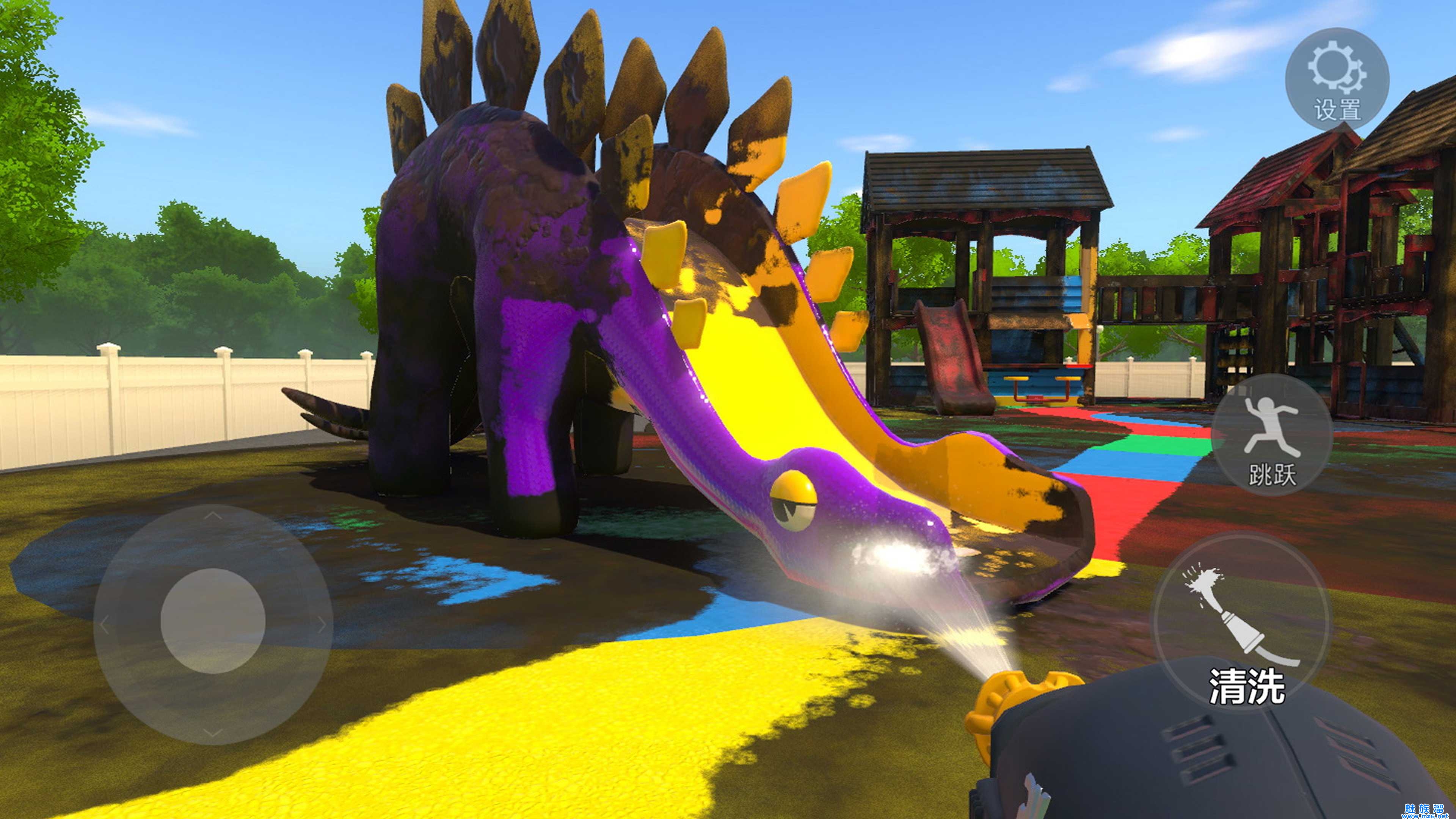 上面有很多的脏东西,需要玩家用高压水枪来冲洗干净。