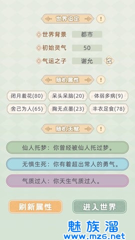 【随机世界】每次穿越都是一个新的小世界,世界背景、气运之子、属性、天赋、人设性格都为随机生成的。