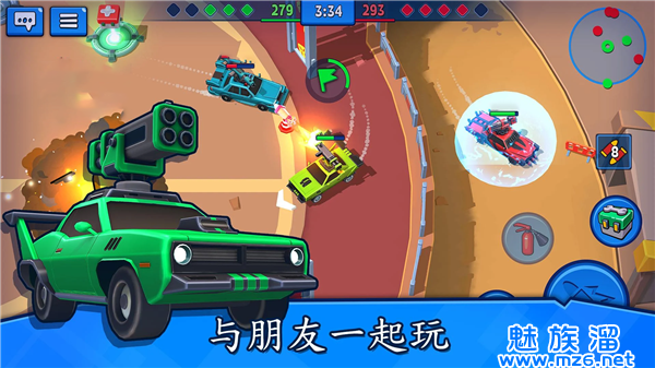 2、解锁各种不同的性能的汽车,自由挑战尽情参与有趣的汽车大作战。