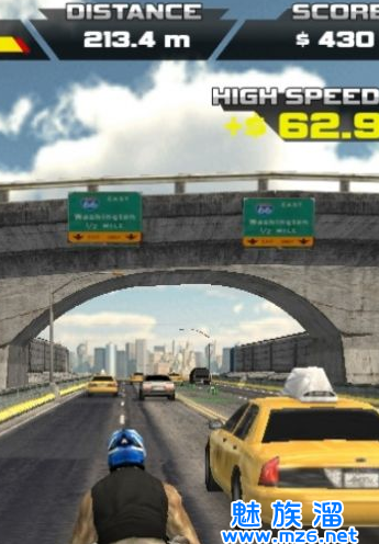 2、游戏中玩家扮演一名摩托车骑手,在不同的公路上进行竞速比赛。