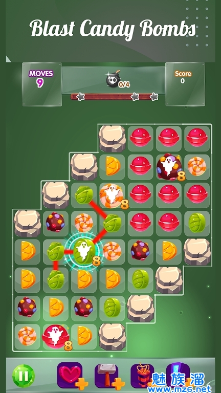 2、利用游戏中的道具,例如铲子、炸弹等,来消除更多的糖果;
