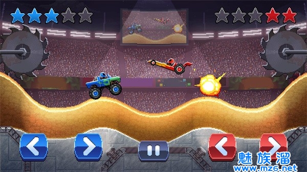 不同的障碍物和敌人的车辆三个级别玩不同的难度。四种车型解锁。