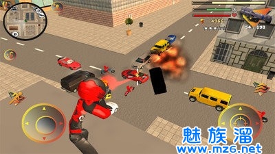 左侧移动、加速,右侧绳索,攻击(跳跃),跳跃,右上侧的武器更换以及血量、经验的显示都实时更新,一览无遗,凭借着大家自由的玩法,与其他帮派的人物进行交火,期间杀人能够获得经验,杀多了会产生星级,警察和其他附近角色会特殊照顾你对你展开火热的进攻,而如何存活,如何将其他人物击杀则是你所需要完成的任务。