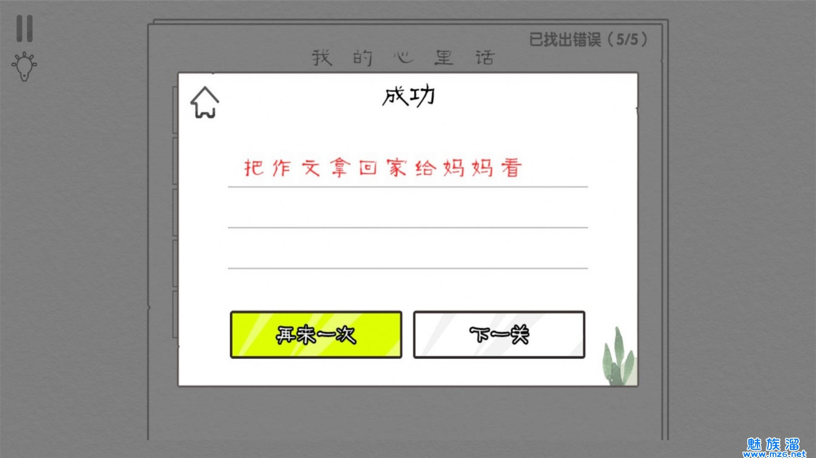 2、经过不断地努力和挑战,找出和纠正所有的错别字后,可以成功通关;