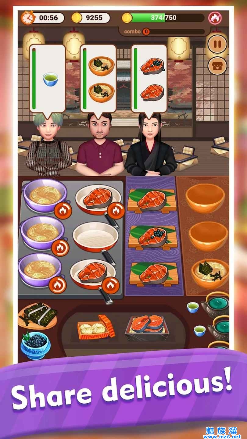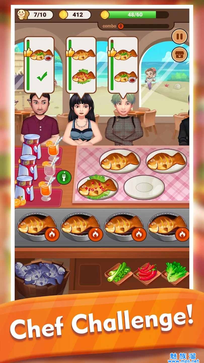 3、在有限的时间内创造美味的菜肴,满足饥饿的顾客,增加收入和游戏分数。