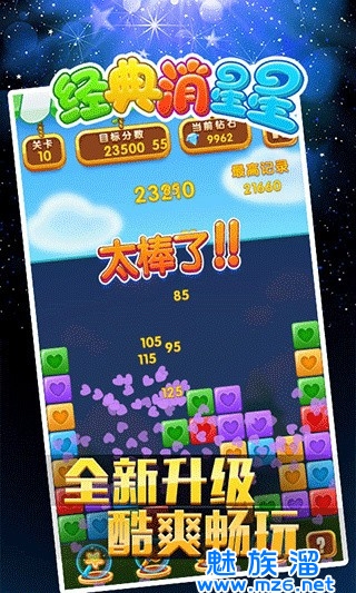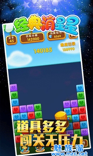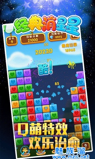清新的面板设计,酷炫的游戏特效,星空场景,定会带你畅游在消除的星星世界中。